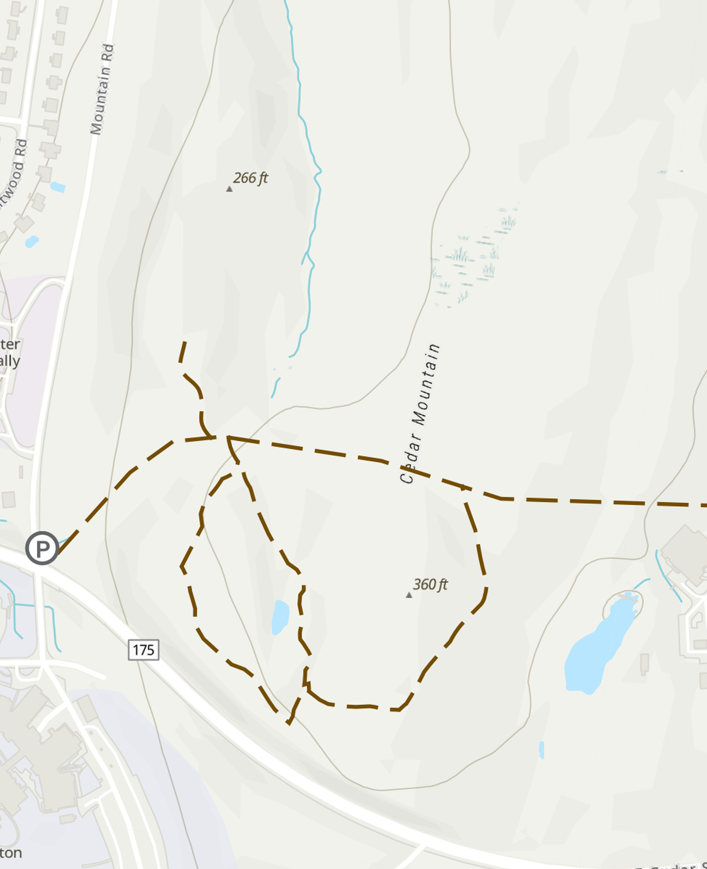 On-street parking available on Mountain Road. No access from East Cedar Street.